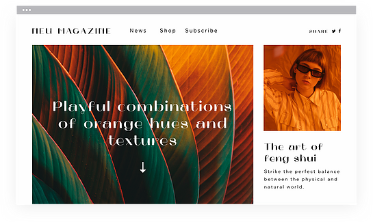 Explore our massive suite of design features and rich libraries of free visual content. They’re all customizable to make your site look just right. Choose from custom color palettes and extensive font selections. Add more advanced design features like innovative transparent videos, custom animations and vector art. You can even upload any file. That way your website looks exactly the way you want.